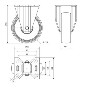 Rueda poliamix fija Alex diametro 125 mm. modelo TW0049