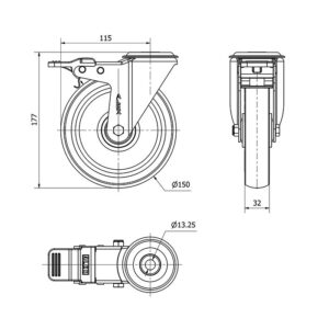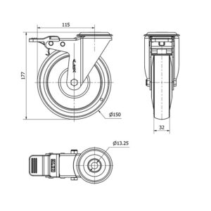 Rueda poliuretano giratoria con freno Alex diametro 150 mm. modelo 2-4274