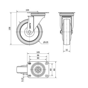 Rueda poliuretano giratoria Alex diametro 125 mm. modelo 2-4958