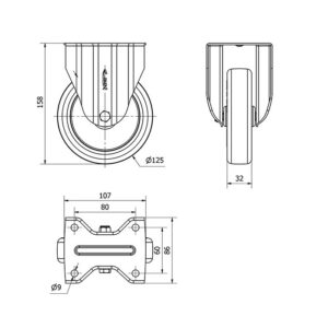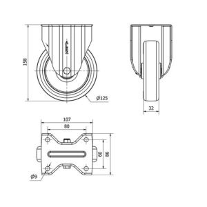 Rueda poliuretano fija Alex diametro 125 mm. modelo 2-4959