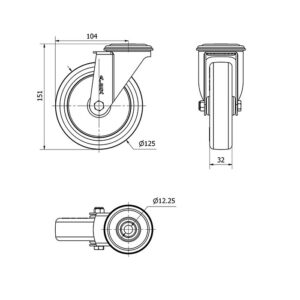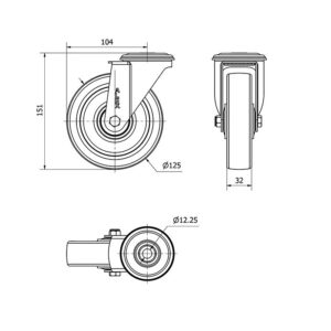 Rueda poliuretano giratoria Alex diametro 125 mm. modelo 2-4893