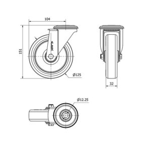 Rueda poliuretano giratoria Alex diametro 125 mm. modelo 2-4833