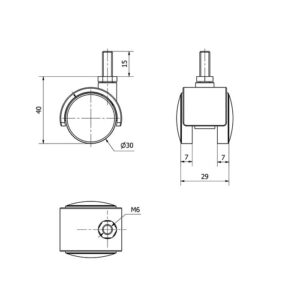 Rueda poliamida giratoria Alex diametro 30 mm. modelo 1-0789