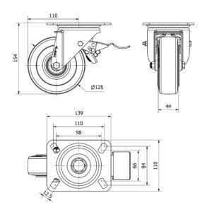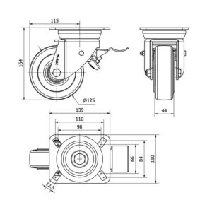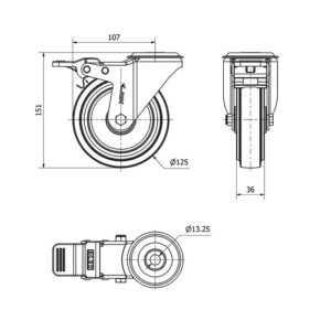 Rueda goma giratoria con freno Alex diametro 125 mm. modelo 2-1015