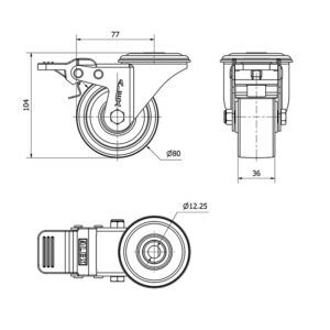 Rueda nylon-poliamida giratoria con freno Alex diametro 80 mm. modelo 2-2694