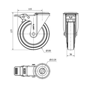 Rueda goma giratoria con freno Alex diametro 150 mm. modelo 2-4264