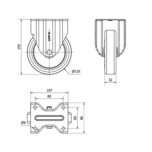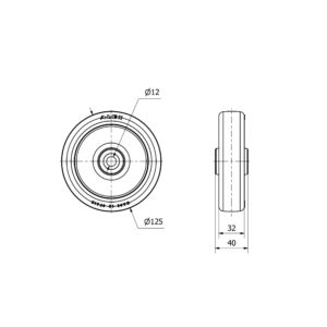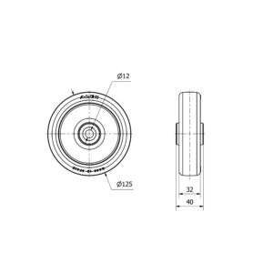 Rueda poliuretano fija Alex diametro 125 mm. modelo 2-2010