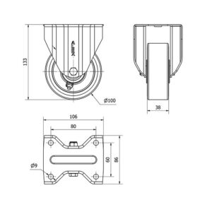 Rueda poliuretano fija Alex diametro 100 mm. modelo 2-2530