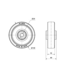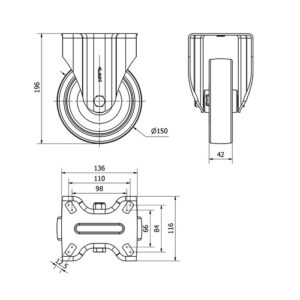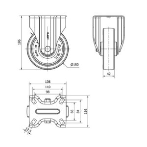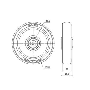 Rueda poliuretano fija Alex diametro 150 mm. modelo 2-2842