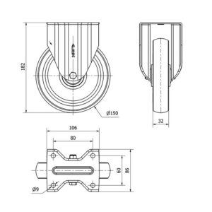 Rueda poliuretano fija Alex diametro 150 mm. modelo 2-2877