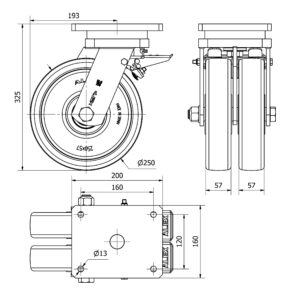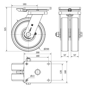 Rueda nylon-poliamida giratoria con freno Alex diametro 250 mm. modelo 2-3815