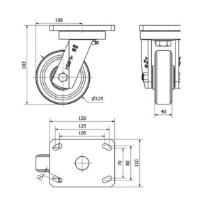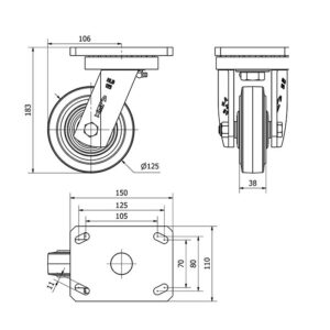 Rueda acero giratoria Alex diametro 150 mm. modelo 2-2519
