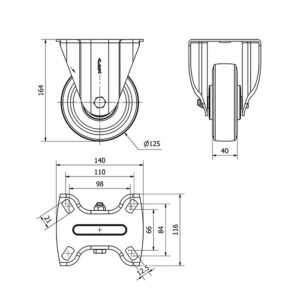 Rueda goma fija Alex diametro 125 mm. modelo 2-2047
