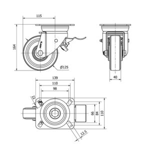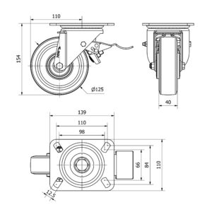 Rueda goma giratoria con freno Alex diametro 125 mm. modelo 2-1998