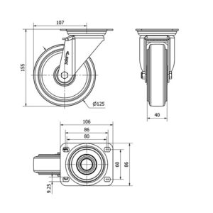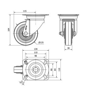 Rueda goma giratoria Alex diametro 125 mm. modelo 2-2792