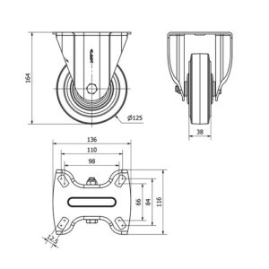 Rueda goma fija Alex diametro 125 mm. modelo 2-3716