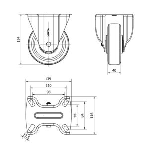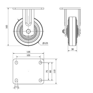 Rueda goma fija Alex diametro 125 mm. modelo 4-0795