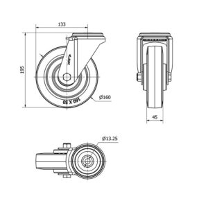 Rueda goma giratoria Alex diametro 160 mm. modelo TW0296