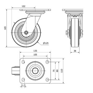Rueda goma giratoria Alex diametro 125 mm. modelo 2-3715