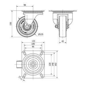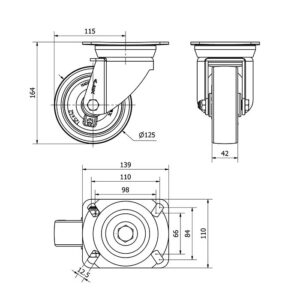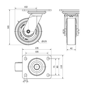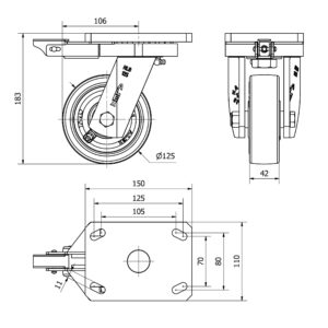 Rueda poliuretano giratoria Alex diametro 125 mm. modelo 4-0264