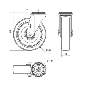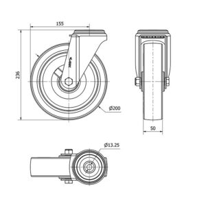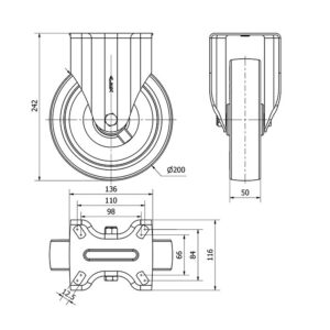 Rueda poliuretano giratoria Alex diametro 200 mm. modelo 2-2359