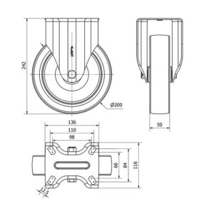 Rueda poliuretano fija Alex diametro 200 mm. modelo 2-3472