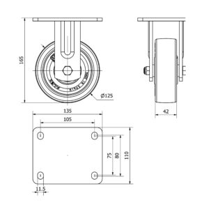Rueda poliuretano fija Alex diametro 125 mm. modelo 4-0265