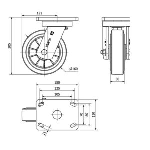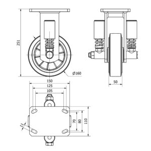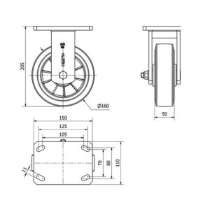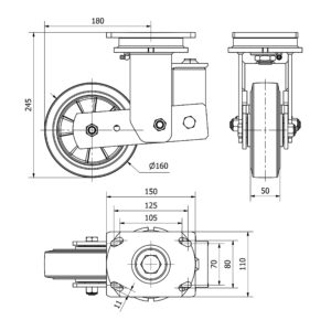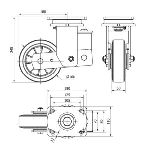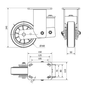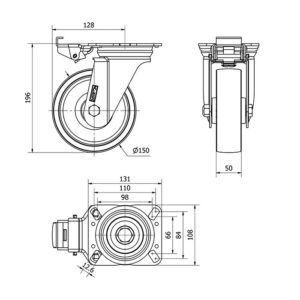 Rueda acero giratoria Alex diametro 150 mm. modelo 2-2515