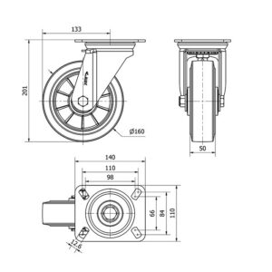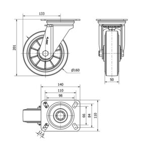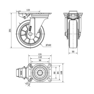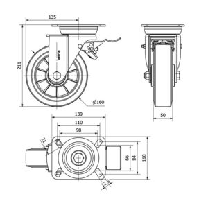 Rueda goma giratoria con freno Alex diametro 160 mm. modelo 2-1999