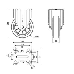 Rueda goma fija Alex diametro 160 mm. modelo 2-3190