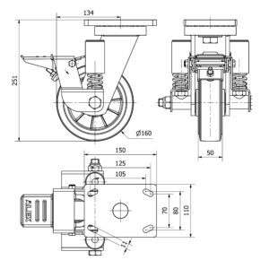Rueda goma giratoria con freno Alex diametro 160 mm. modelo 2-1157