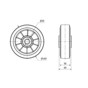 Rueda goma fija Alex diametro 160 mm. modelo 2-0451