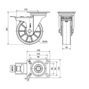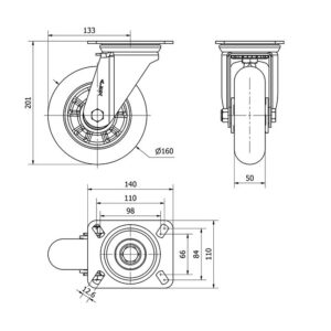 Rueda poliuretano giratoria con freno Alex diametro 160 mm. modelo 2-3972