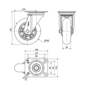 Rueda poliuretano giratoria Alex diametro 160 mm. modelo 2-3970