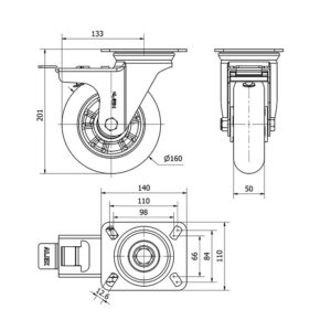 Rueda poliuretano giratoria con freno Alex diametro 160 mm. modelo 2-4390