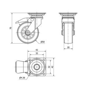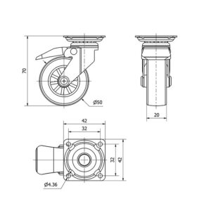 Rueda policarbonato giratoria Alex diametro 50 mm. modelo 1-0593