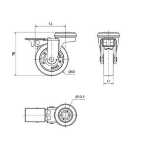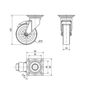 Rueda policarbonato giratoria Alex diametro 75 mm. modelo 1-0524
