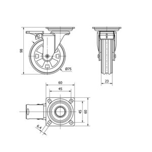 Rueda policarbonato giratoria Alex diametro 75 mm. modelo 1-0523