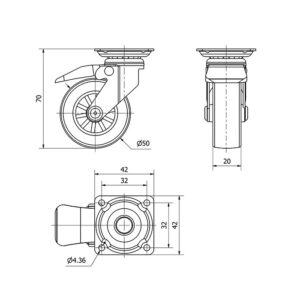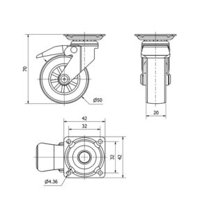 Rueda policarbonato giratoria con freno Alex diametro 50 mm. modelo 1-0520