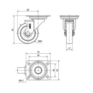 Rueda polipropileno-plastico giratoria Alex diametro 60 mm. modelo 3-0010