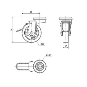 Rueda policarbonato giratoria Alex diametro 75 mm. modelo 1-0525