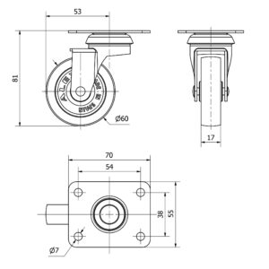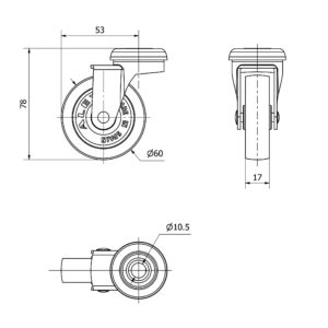Rueda polipropileno giratoria Alex diametro 60 mm. modelo 3-0007