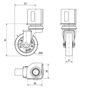Rueda polipropileno-plastico giratoria Alex diametro 60 mm. modelo 1-0228