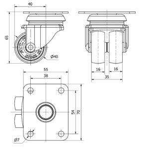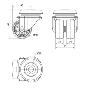 Rueda polipropileno-plastico giratoria Alex diametro 40 mm. modelo 3-0014