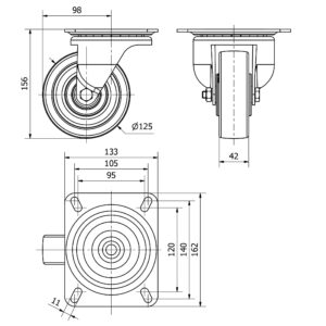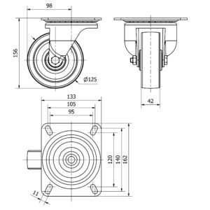 Rueda acero fija Alex diametro 125 mm. modelo 4-0281