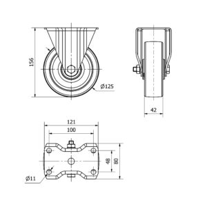 Rueda nylon-poliamida fija Alex diametro 125 mm. modelo 4-0115