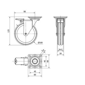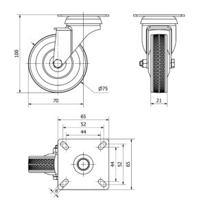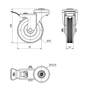Rueda goma giratoria Alex diametro 75 mm. modelo TW0089