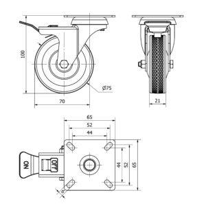 Rueda goma giratoria con freno Alex diametro 75 mm. modelo TW0084