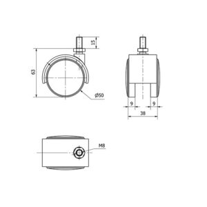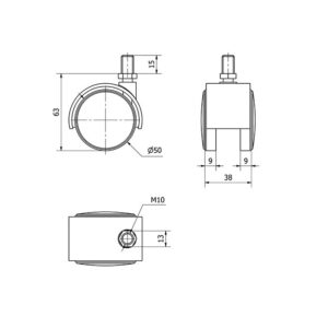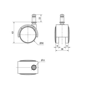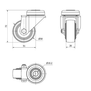 Rueda nylon-poliamida giratoria Alex diametro 50 mm. modelo TW0136