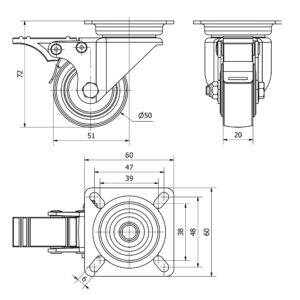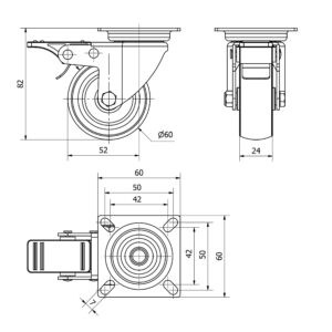 Rueda goma giratoria con freno Alex diametro 60 mm. modelo TW0238